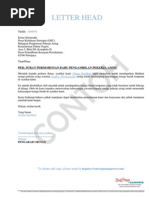 Contoh Surat Rasmi Permohonan Pengambilan Pekerja Asing Otosection