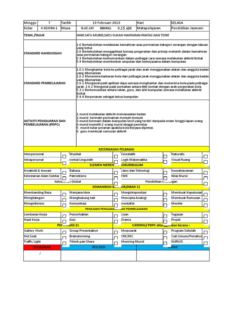 Rph Pendidikan Jasmani Tahun 4 Gurubesar My