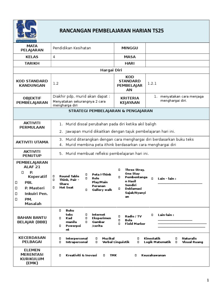 Rancangan Pengajaran Harian Pendidikan Kesihatan Tahun 4 Otosection